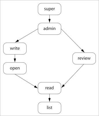 open, write, admin, or